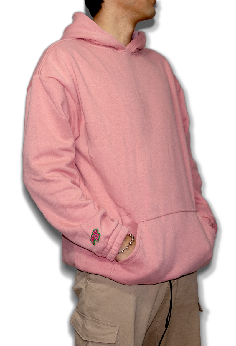 Camiseta básica oversize unisex rosada pastel. Esta prenda es desarrollada sobre una base mixta con algodón (97%) y expandex (3%), con parche del logo sobre la manga derecha, marquilla de cuello y banderín logo en el costado izquierdo. La desarrollamos para que te puede acompañar para ver Netflix con tu crush hasta para salir con tu parche.